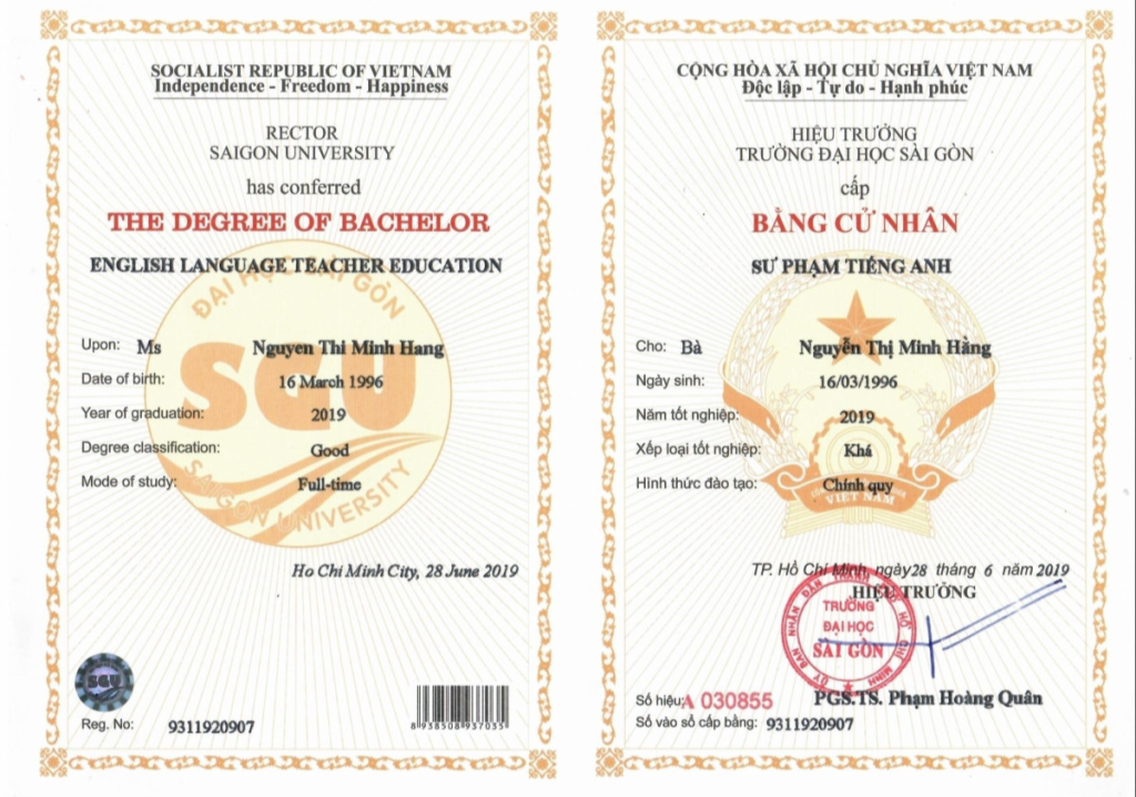 Lưu ý: Khi cần làm bằng đại học Sài Gòn, bạn nên chọn các bằng tốt nghiệp sau năm 2020. Vì chúng tôi cung cấp bằng kèm hồ sơ gốc tại trường, bao gồm: bảng điểm, mã số sinh viên, học bạ,… Điều này đảm bảo việc kiểm tra bằng cấp được chính xác và tiện lợi nhất.