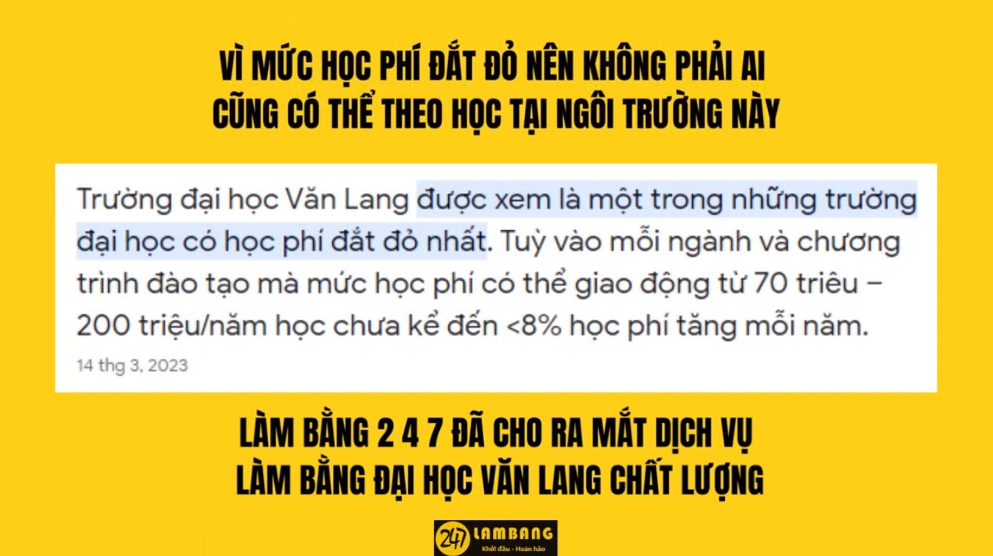 Bảng giá dịch vụ làm bằng đại học Văn Lang tại Làm Bằng 247