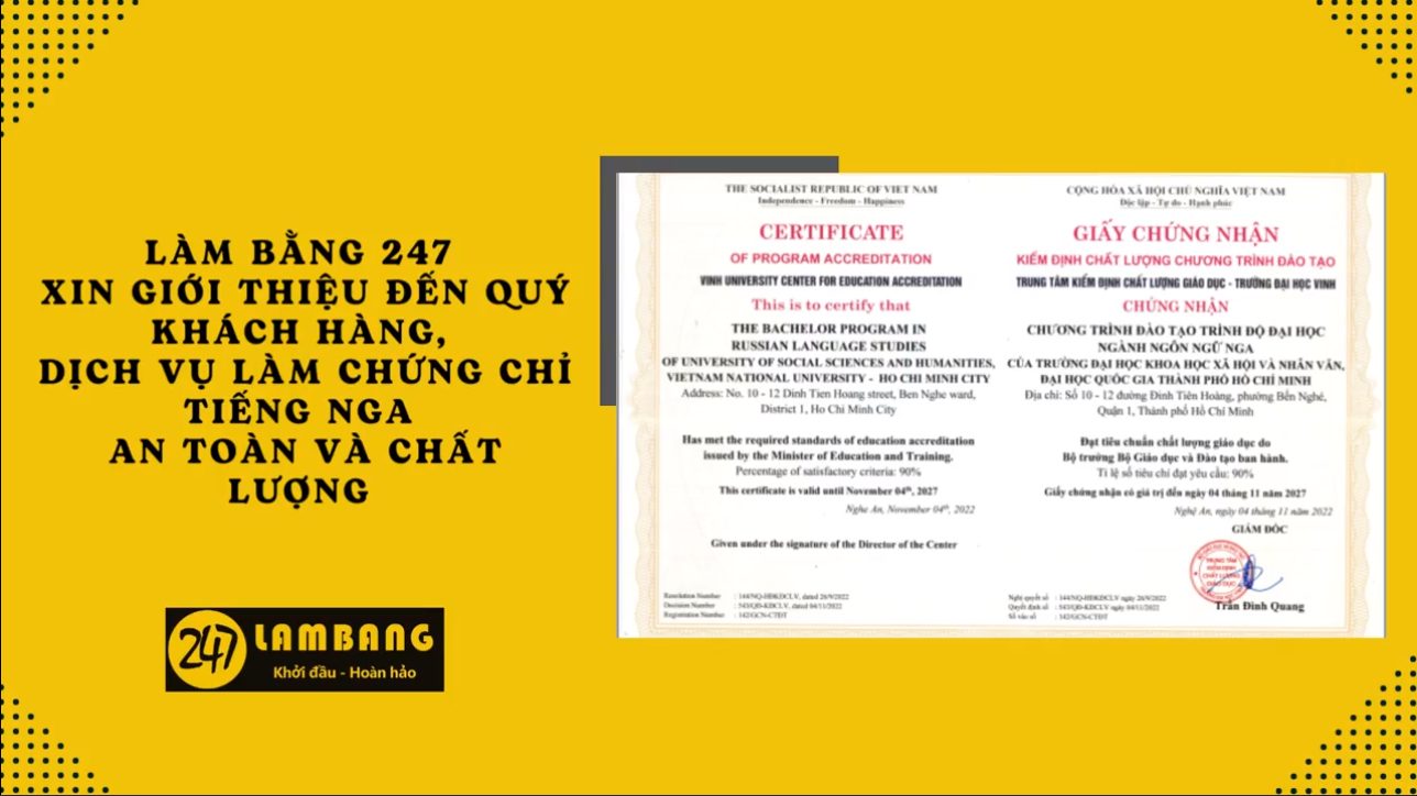 Cam kết chất lượng dịch vụ làm chứng chỉ Tiếng Nga tại Làm Bằng 247